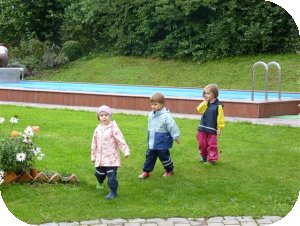 Die Kinder können sich in unserem kleinen Streichelzoo mit Zwergziegen, Damwild, Katzen, Hasen und Hühner und Enten beschäftigen oder sich auf dem Abenteuerspielplatz austoben. Dafür stehen ihnen